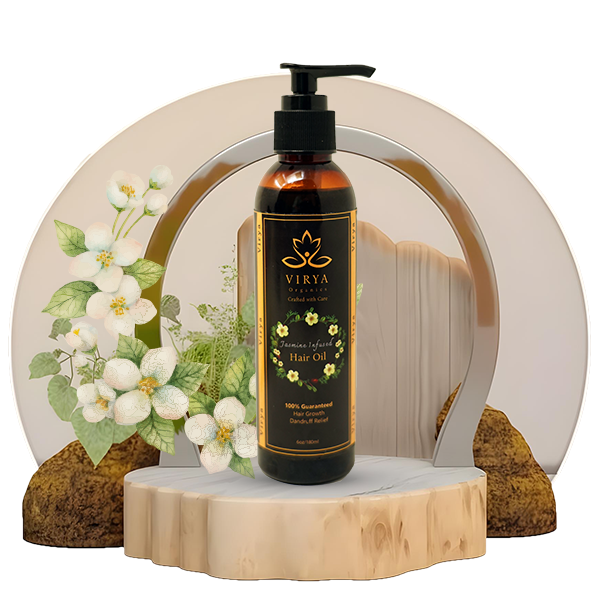 Virya Organics Jasmine Infused Hair Oil is a luxurious blend designed to nourish and revitalize your hair. Infused with the delicate essence of jasmine, this oil not only imparts a soothing fragrance but also provides deep conditioning to strengthen and protect your hair. Jasmine oil is known for its ability to enhance hair’s natural shine, tame frizz, and improve elasticity, making it perfect for all hair types. Rich in antioxidants, this oil helps to repair damaged hair, prevent breakage, and promote healthy growth, leaving your hair soft, smooth, and radiant. Ideal for a relaxing scalp massage, this oil hydrates the scalp, reducing dryness and flakiness, while encouraging healthy, vibrant hair
