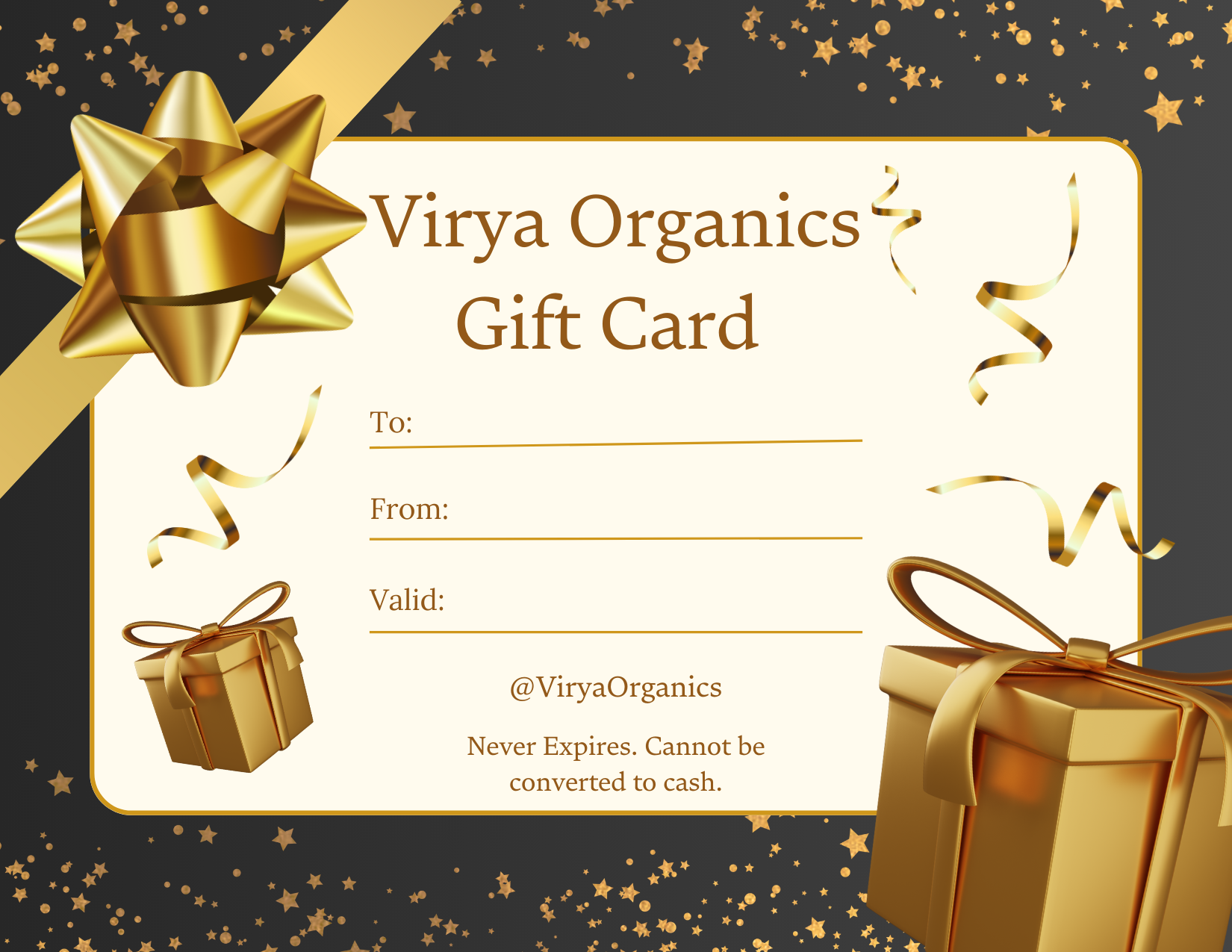 Give the gift of self-care with Virya Organics Gift Cards! Perfect for any occasion, our gift cards let your loved ones choose from our range of luxurious, Ayurvedic-inspired hair and skincare products. Whether it’s nourishing oils, soothing soaps, or radiant serums, they’ll find something to love.